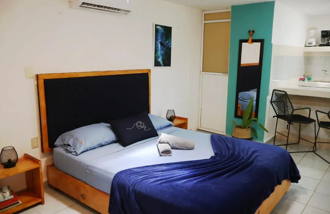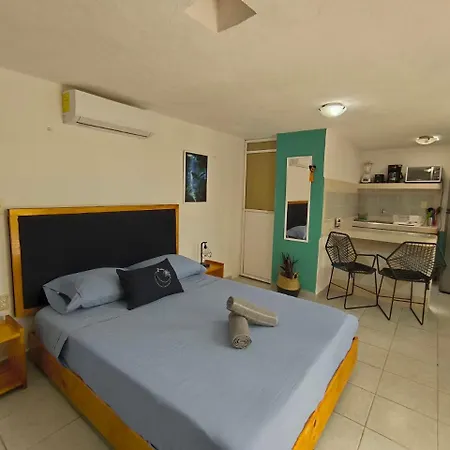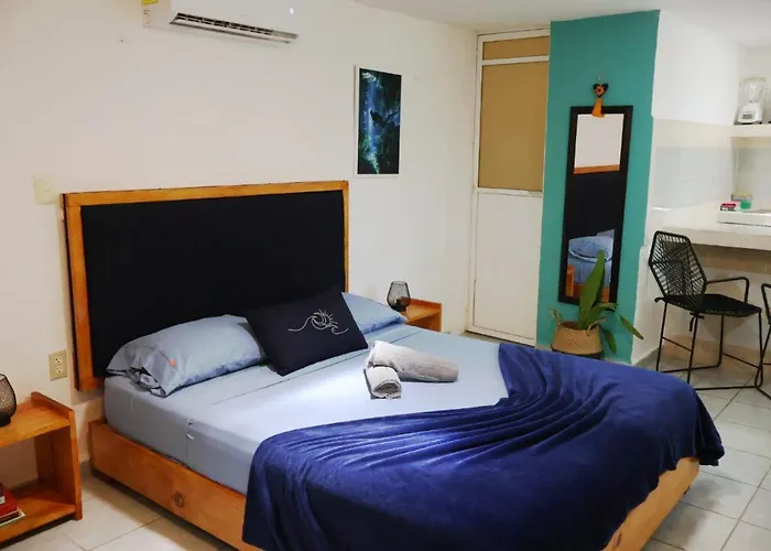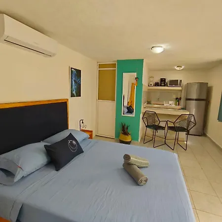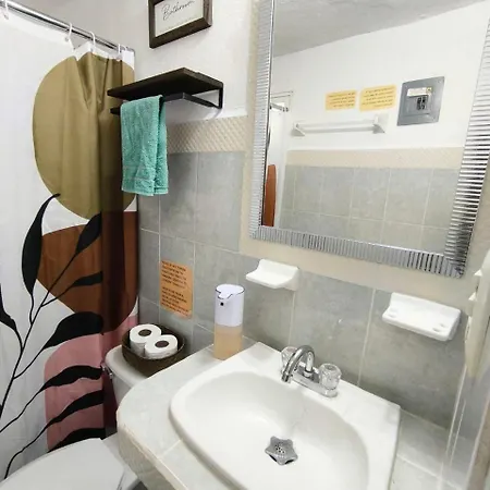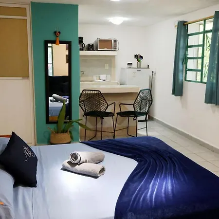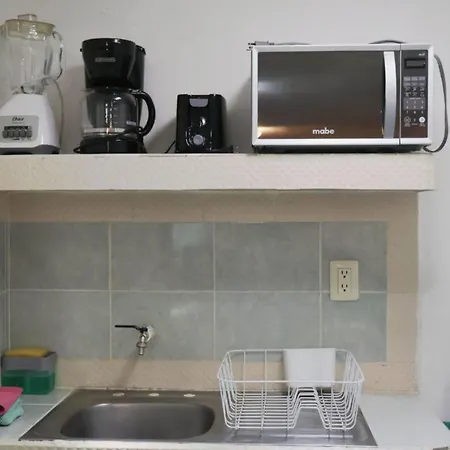 Há cozinha totalmente equipada neste apartamento, equipada com microondas, chaleira elétrica e refrigerador. Comodidades de cozinha, tais como máquinas de café/chá, são fornecidas para proporcionar aos hóspedes uma experiência conveniente. Servindo especialidades da cozinha mexicana, Restaurant Plaza Leza fica a aproximadamente 5 minutos a pé de distância. Este apartamento de 1 quartos está a uma curta caminhada do ponto de ônibus ADO. O luxo adicional de solário, terraço ensolarado e jardim contribuirão para uma ótima experiência de relaxamento.
